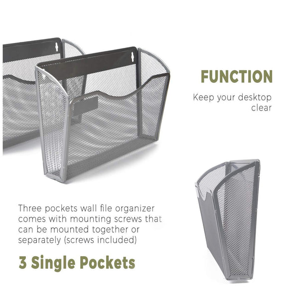 Hanging on Wall Saves Space - Away from file mail magazines messy, highly save space for you. 3 pockets wall file organizer comes with mounting screws that can be mounted together or separately (screws included), easy hanging on wall, door or side of desk.